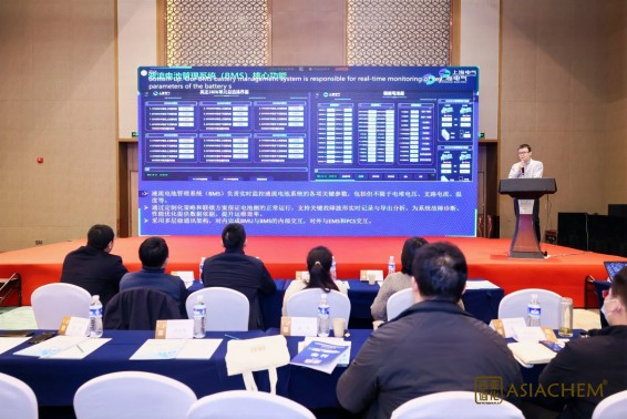 合肥工业大学副教授李鑫作《全钒液流电池储能传感与控制》报告。介绍了电池系统、控制系统、未来趋势等内容。认为全钒液流电池传感器缺陷明显,电池控制逻辑不完善,系统调度水平不高;全钒液流电池系统所需传感器种类繁杂,且涉及模拟量、数字量,需做好传感器选型适配与接口统一协调;其EMS+BMS双向交互控制系统可实现秒-秒-分钟-小时全时间尺度,机-电-液-化-控全参数,应用场景多样化。